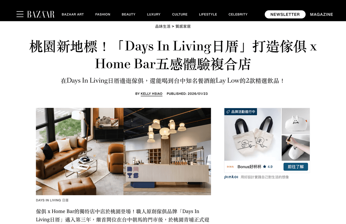 職人原創傢俱品牌「Days In Living 日厝」,無論是英文直譯「陪伴生活的每一天」,或中文所蘊含的台語諧音「入厝」之意,皆象徵著「家的開始與生活的展開」,而品牌正是串連日常與居家生活之間的橋樑。