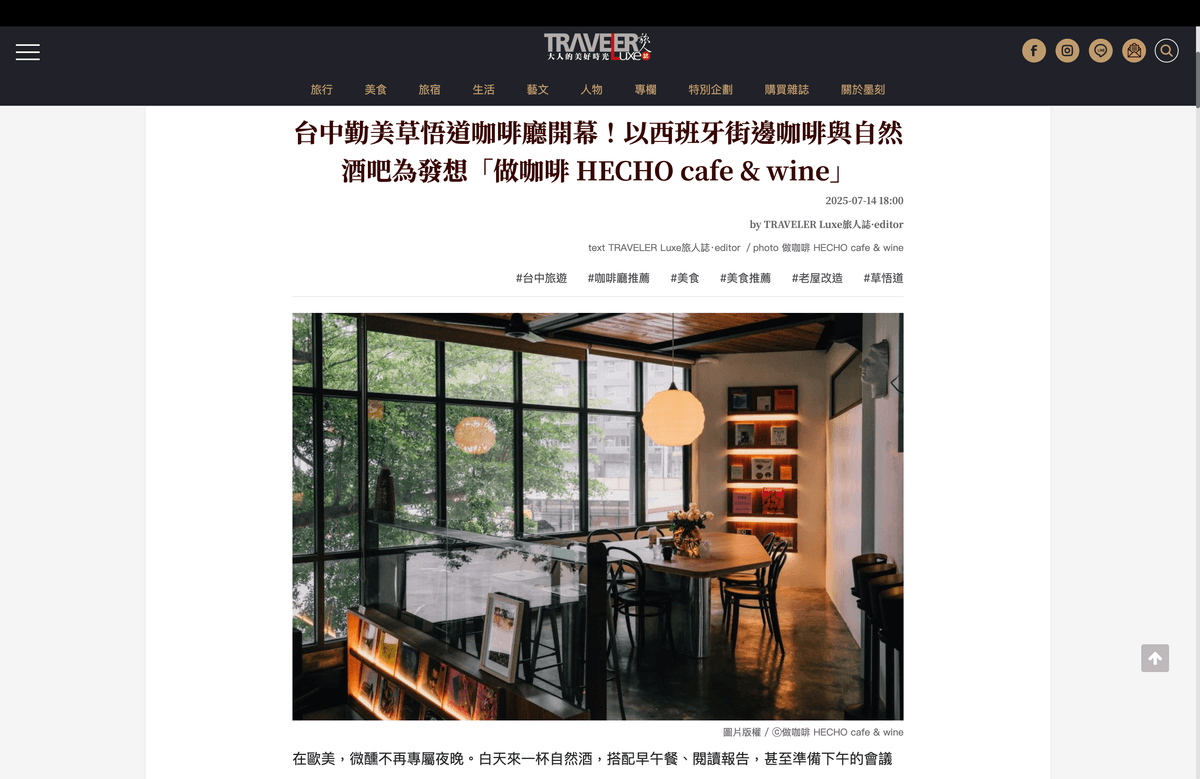 位於台中勤美草悟道巷弄中的「做咖啡 HECHO cafe & wine」,自2013年創立以來,便是一處承載城市節奏與個人記憶的空間。HECHO憑藉溫暖的風格與穩定的服務品質,早已成為許多人心中最熟悉的老地方。歷經12年耕耘,HECHO在2025年以全新姿態重新出發——從空間設計到菜單內容,展開一場細膩而深刻的進化。