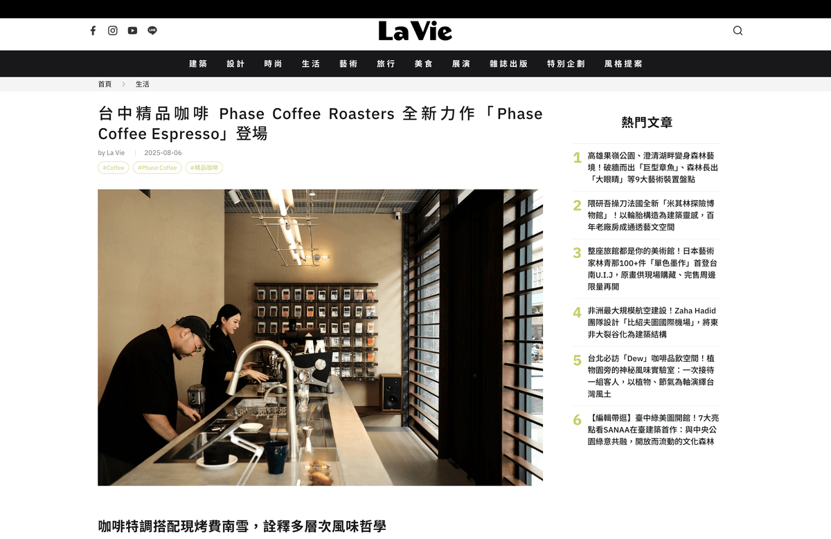 專注於創作並挖掘咖啡未被發現的風味層次,位於台中中區的精品咖啡店「Phase Coffee Roasters」,不僅吸引眾多咖啡愛好者前來朝聖,也因鄰近多個交通樞紐,成為海外旅客造訪台中時的熱門據點,無論平日或假日,店內總是一位難求。