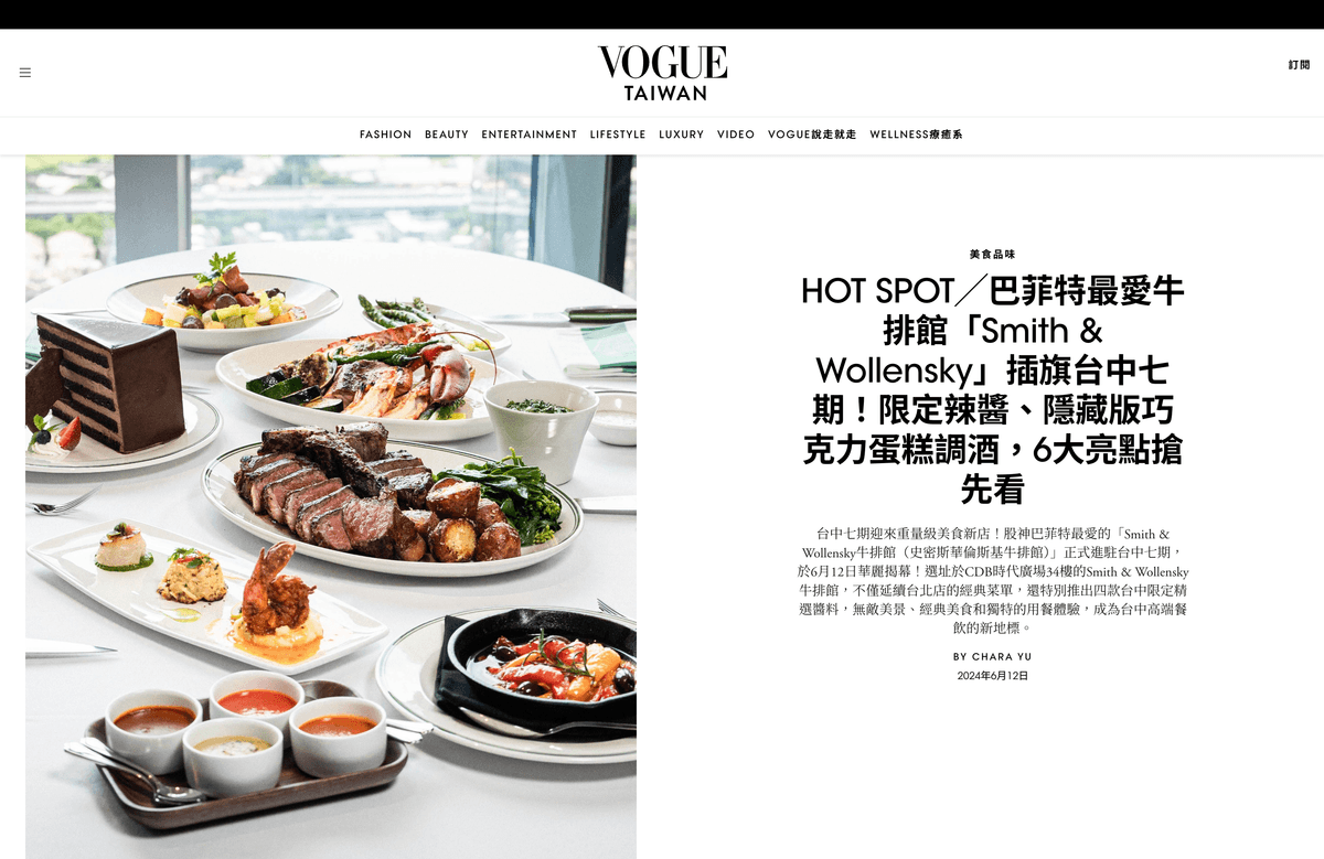 美國最受歡迎的牛排館Smith & Wollensky慶祝台北店五週年紀念,6/12台中店正式盛大開幕,看中台中蓬勃發展的餐飲市場與七期重劃區商業經濟核心的消費潛力,選擇進駐CBD時代廣場34樓,成為台中最高牛排館,延續品牌在亞洲高樓層景觀餐廳的風格,提供經典美食與無敵美景的完美結合,預計將掀起一波乾式熟成風潮。